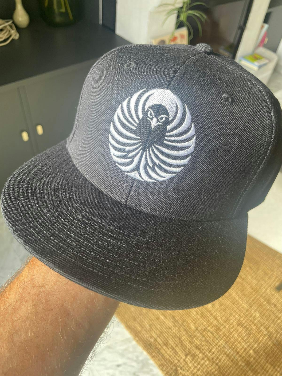 Snapback cap featuring the emblem of the raven, a symbol of guidance and sacred intelligence in Japanese culture.